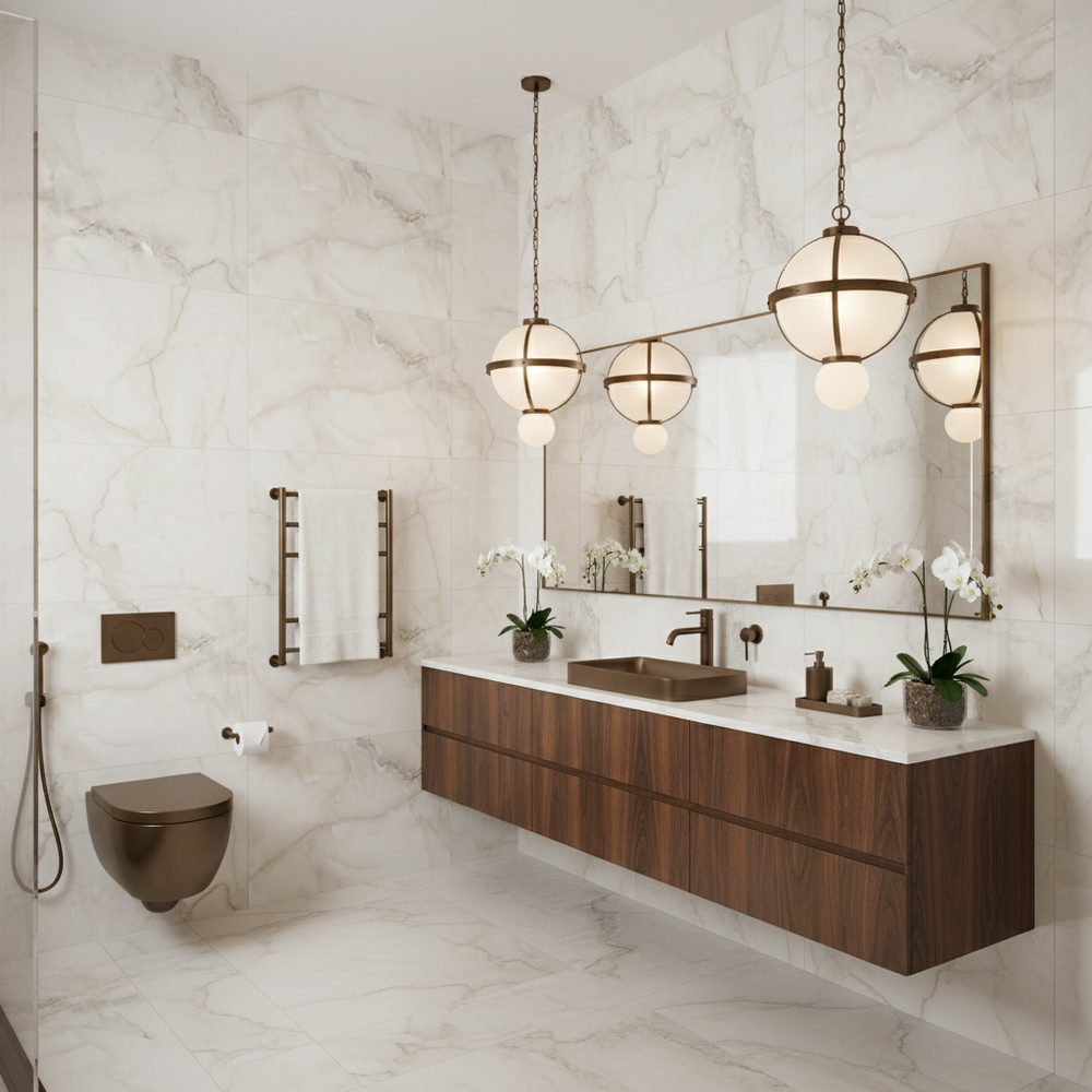 Transform your bathroom into a stylish sanctuary with our large size bathroom tiles. These tiles offer a sleek and modern finish, making your bathroom look spacious and inviting. Choose from a variety of colours, patterns, and finishes to create a unique and personalised look.