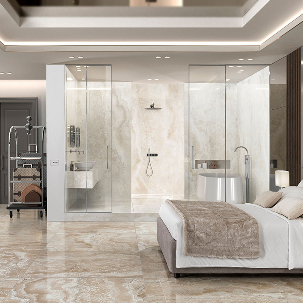 Semi-polished tile is a type of tile with a finish that's a balance between matte and fully polished. It's created by partially polishing the tile surface, resulting in a gentle sheen that reflects light more subtly than a fully polished tile.