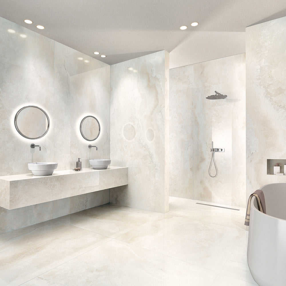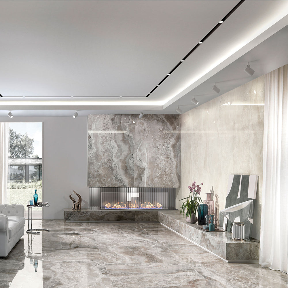 Transform your space with our semi-polished tiles at Tilezone.co.uk, offering a fashionable, on-trend design with a subtle sheen that creates a striking focal point while blending elegance and functionality.
