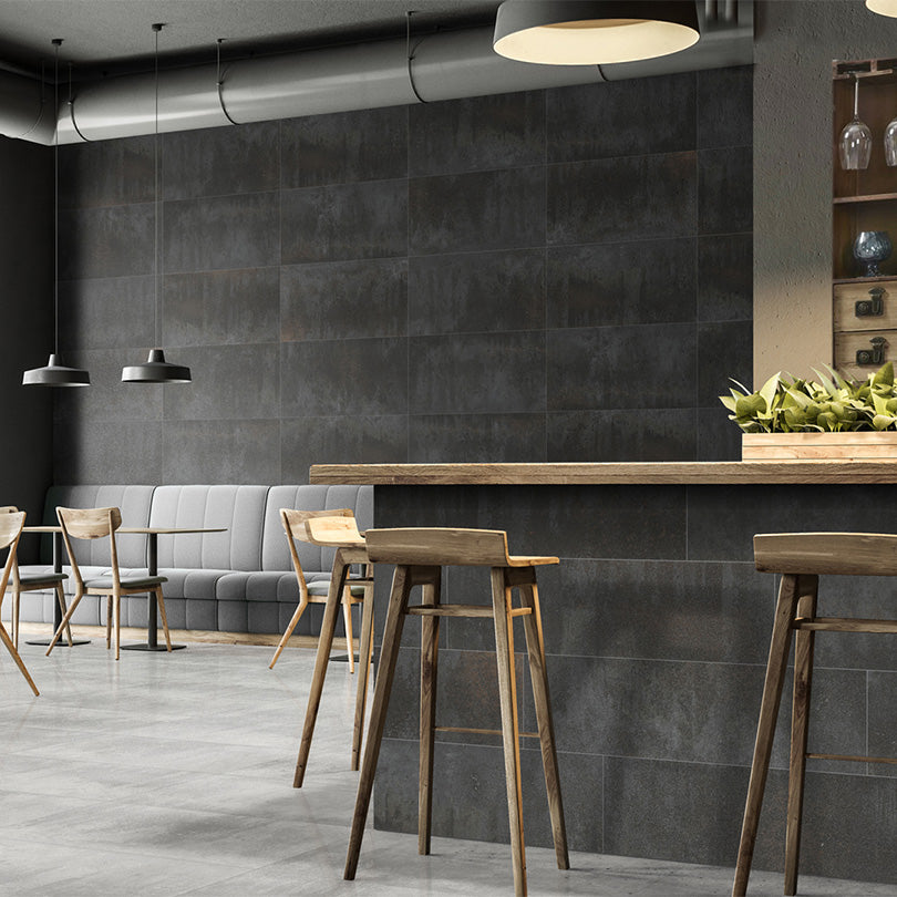 Domino Soft Black Semi Polished Large Format Porcelain Tile
