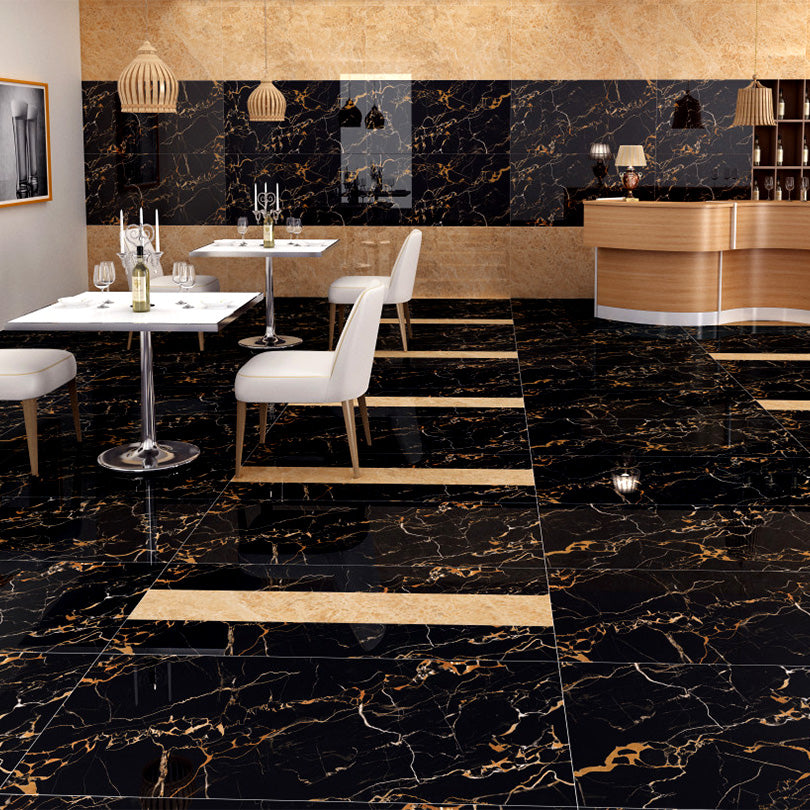 Royal Black & Gold Polished Porcelain Marble Effect Tile