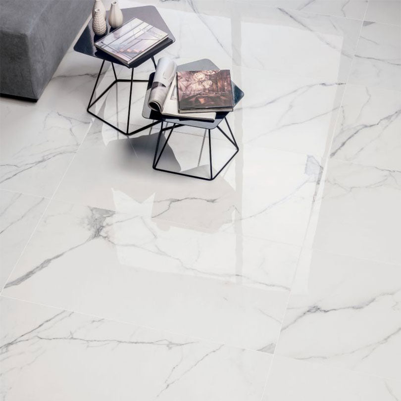 Faithfully replicating genuine Italian Marble and available in the popular large format size, Royal Statuario is ideal for creating a pleasing, continuous effect when used across multiple roomscapes. Subtle veining combined with a high gloss finish means that a luxurious aesthetic is guaranteed and rectified edges are on hand to ensure uniform, minimal grout lines across the floor space. Royal Statuario is suitable for domestic and commercial use; the attractive high gloss polished finish and large form factor ensures this tile is ideal for open, expansive spaces.